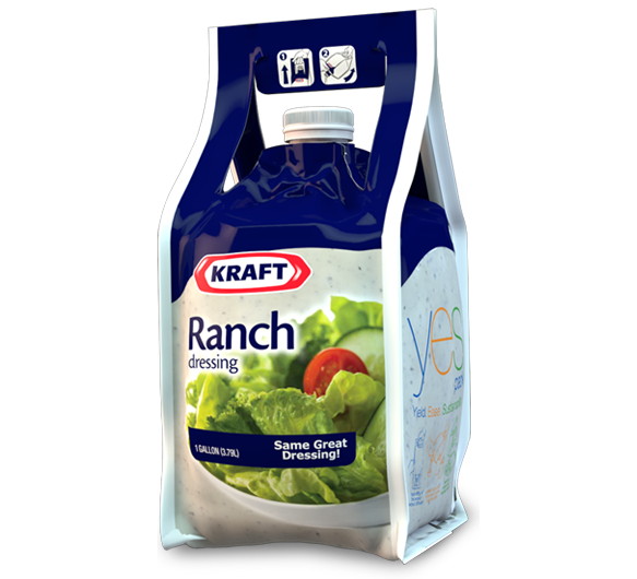 Новая гибкая упаковка для салатных заправок, разработанная для использования в системе общественного питания, представлена компанией Kraft. Пакет YES Pack позволяет использовать до 99% содержимого. Он предназначен для восьми видов заправок, которые производит Kraft Foods.