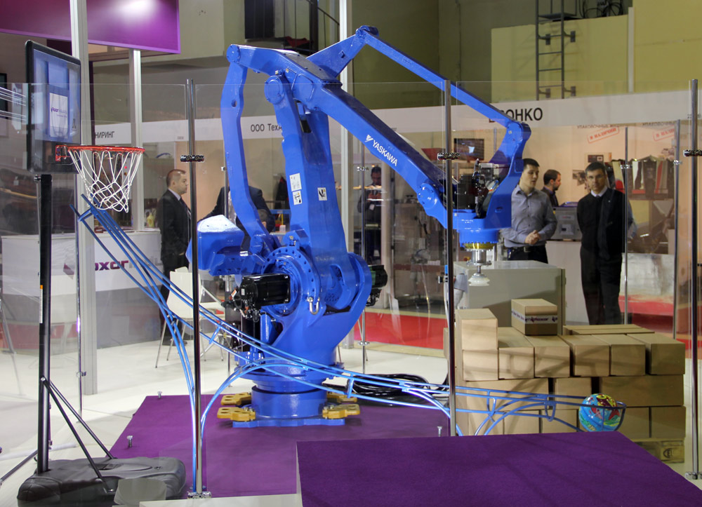 Компания Roxor представляет на своем стенде роботизированное оборудование фирмы Yaskawa. Робот с контроллером DX 1000 ловко закидывает мячик в корзину и неутомимо перекладывает коробки. Роботы последнего поколения способны выполнять разнообразные задачи, в том числе в области упаковки. Контроллер DX100, способный контролировать до 8 роботов или 72 оси одновременно, обеспечивает улучшенную энергетическую эффективность.