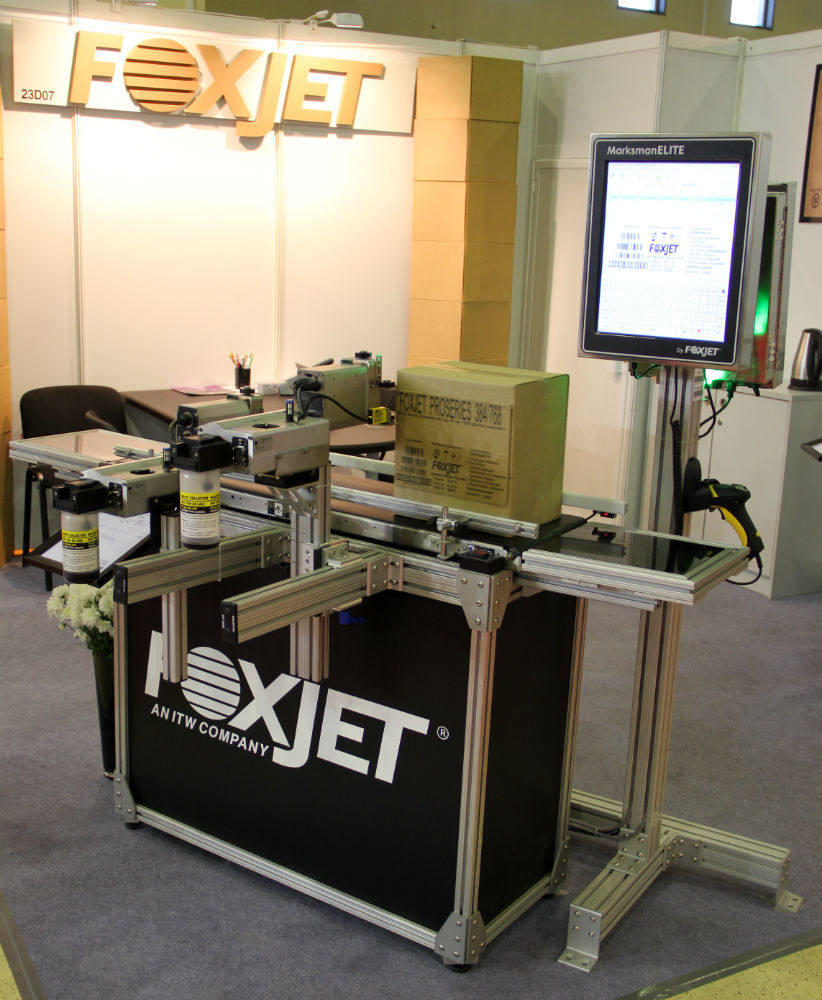 На стенде компании «Маркировочные системы» – партнера американской фирмы FoxJet – посетители имели возможность увидеть систему маркировки картонных коробок FoxJet, оснащенную контроллером Marksman Elite. Сочетание печатающих головок высокого разрешения на основе технологии Trident и удобных в использовании контроллеров Marksman делает FoxJet идеальным решением для маркировки тары и упаковки. С системой FoxJet упаковщик может сразу печатать различные штрихкоды, логотипы и изображения для своих клиентов, что позволяет отказаться от предварительной маркировки на коробках.