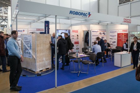 По одному экземпляру, причем, не самому интересному из обширной номенклатуры продукции было, например, на стендах Yamato Scale (Германия) – комбинационный дозатор и Aetna Group (Сан-Марино-Италия), точнее одной из компаний группы Robopac – обвязчик палет Roboplant 708.